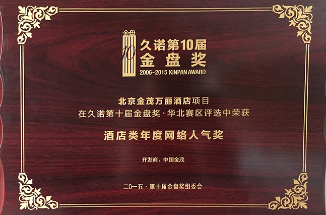 北京金茂萬(wàn)麗酒店榮獲2015第十屆金盤獎(jiǎng)華北賽區(qū)酒店類年度網(wǎng)絡(luò)人氣獎(jiǎng)