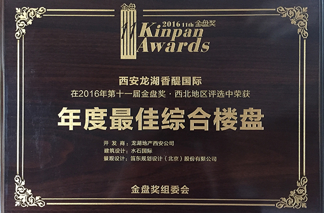 西安龍湖香醍國(guó)際榮獲2016金盤獎(jiǎng)西北地區(qū)年度最佳綜合樓盤