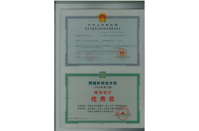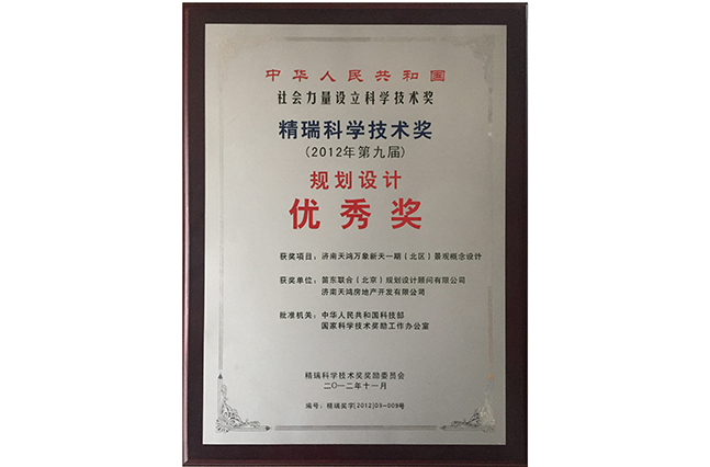 濟(jì)南天鴻萬(wàn)象新天一期(北區(qū))榮獲2012精瑞科學(xué)技術(shù)獎(jiǎng)規(guī)劃設(shè)計(jì)優(yōu)秀獎(jiǎng)
