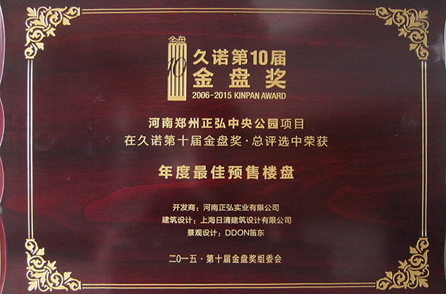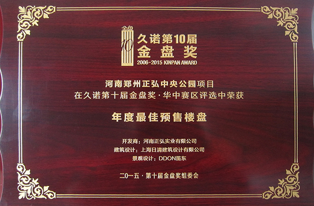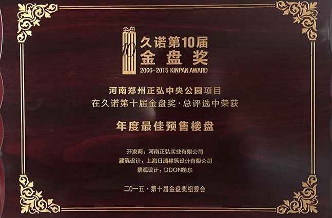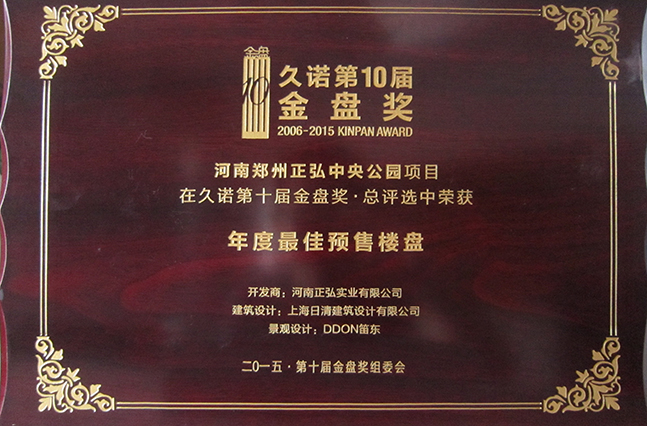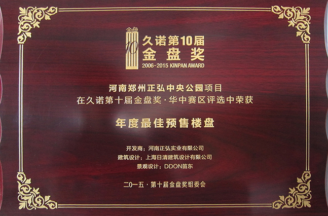 河南鄭州正弘中央公園榮獲2015第十屆金盤獎(jiǎng)年度最佳預(yù)售樓盤