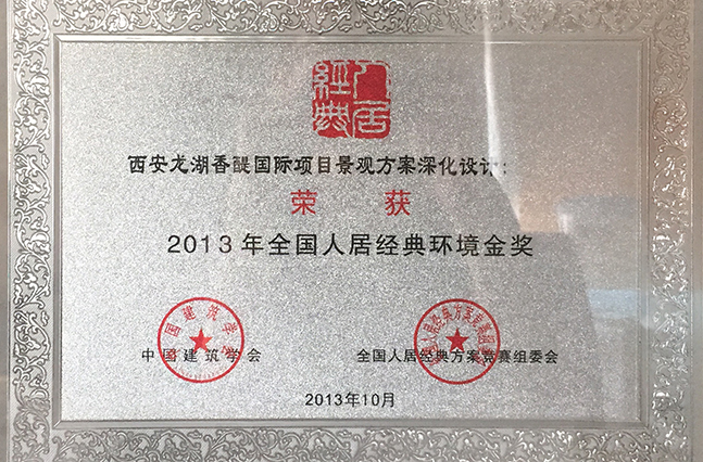西安龍湖香醍國(guó)際榮獲2013人居環(huán)境獎(jiǎng)全國(guó)人居經(jīng)典環(huán)境金獎(jiǎng)