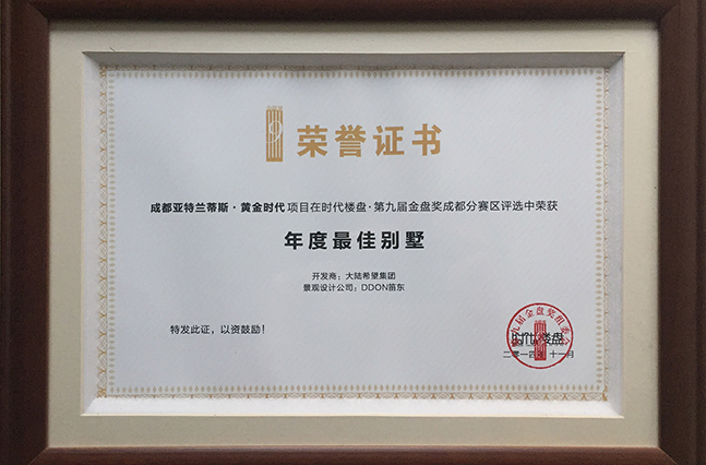 成都亞特蘭蒂斯·黃金時(shí)代榮獲2014第九屆金盤獎(jiǎng)成都分賽區(qū)年度最佳別墅