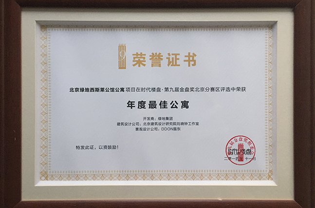 北京綠地西斯萊公館公寓榮獲2014第九屆金盤獎(jiǎng)成都分賽區(qū)年度最佳公寓