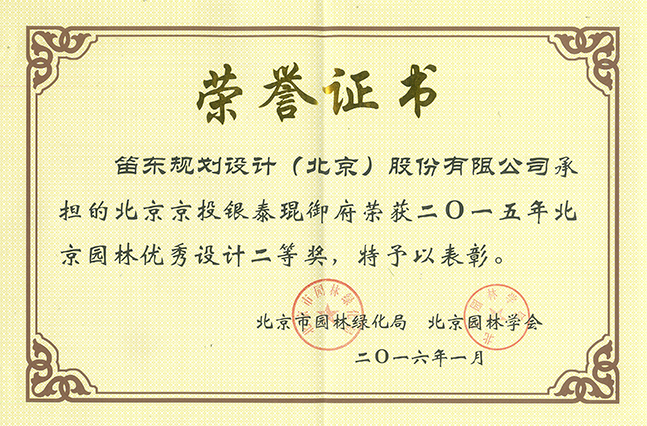 北京京投銀泰琨御府榮獲2015年北京園林優(yōu)秀設(shè)計(jì)二等獎(jiǎng)