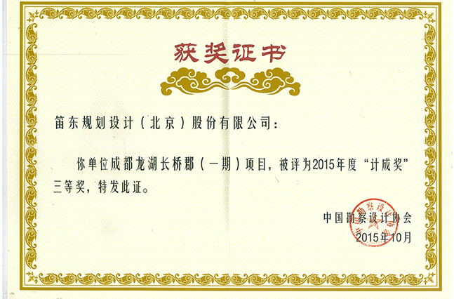 成都龍湖長(zhǎng)橋郡(一期)榮獲2015中國(guó)勘察設(shè)計(jì)協(xié)會(huì)2015年度計(jì)成獎(jiǎng)三等獎(jiǎng)