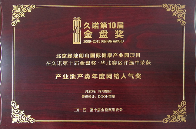 北京綠地朗山國(guó)際健康產(chǎn)業(yè)園榮獲2015第十屆金盤獎(jiǎng)華北賽區(qū)產(chǎn)業(yè)地產(chǎn)類年度網(wǎng)絡(luò)人氣獎(jiǎng)