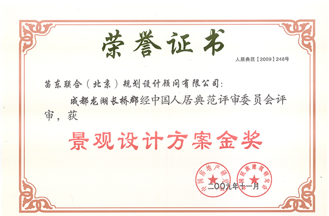 成都龍湖長(zhǎng)橋郡榮獲2009中國(guó)人居典范獎(jiǎng)景觀設(shè)計(jì)方案金獎(jiǎng)