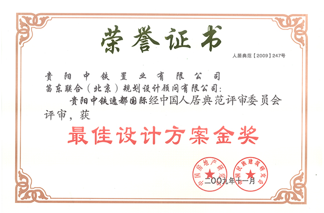 貴陽(yáng)中鐵逸都國(guó)際榮獲2009中國(guó)人居典范獎(jiǎng)最佳設(shè)計(jì)方案金獎(jiǎng)