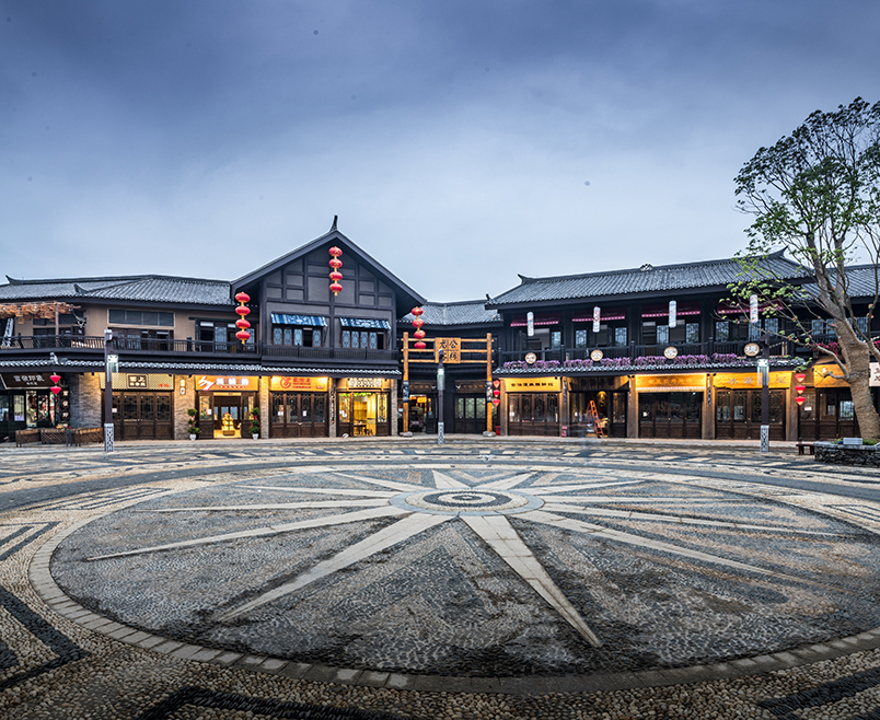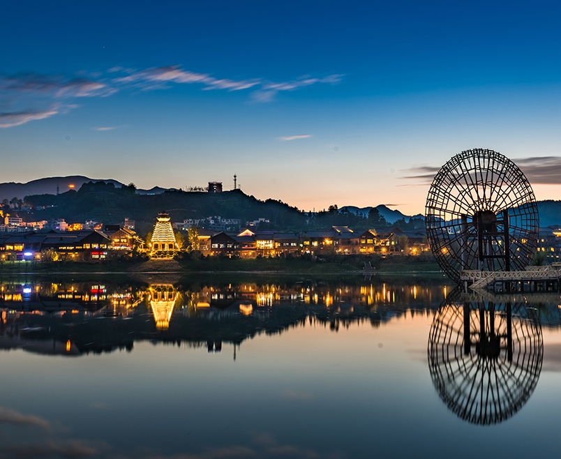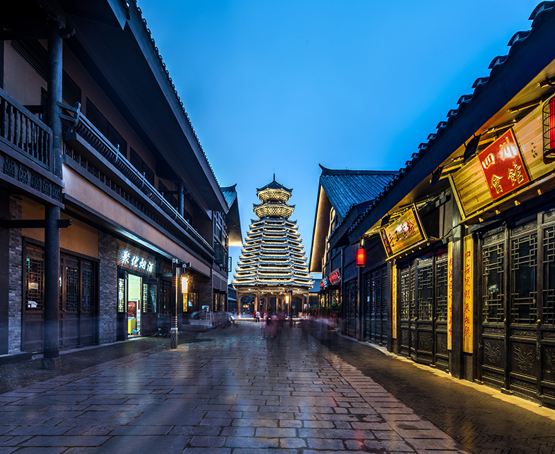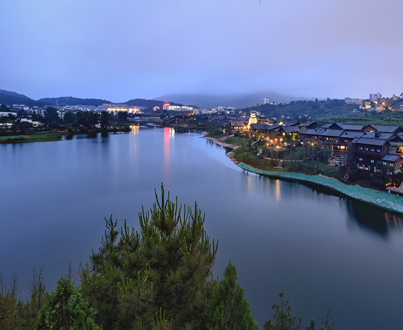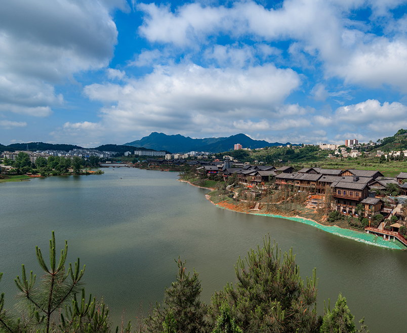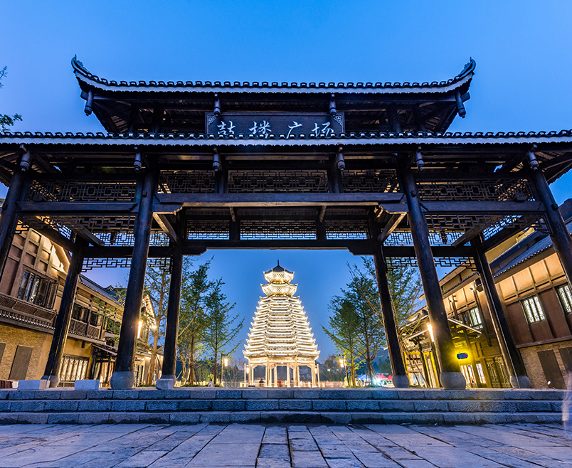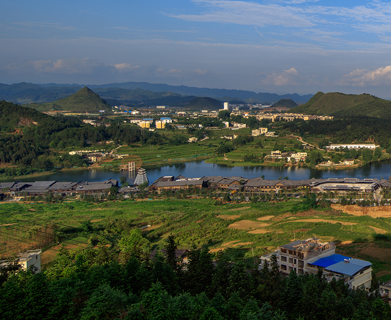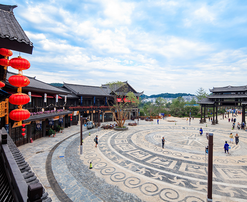 項目位于貴州省東南部、黔東南州西部的丹寨,在設(shè)計時融合丹寨節(jié)、歌、舞、肴等傳統(tǒng)民俗文化,結(jié)合黔東南地區(qū)獨特而特殊的地質(zhì)條件,提出“云上十八灣”的景觀主題,著力打造具有苗族特 色的旅游、休閑、度假、博彩、文化于一體的新型民族文化主題商業(yè)街區(qū)式景觀。