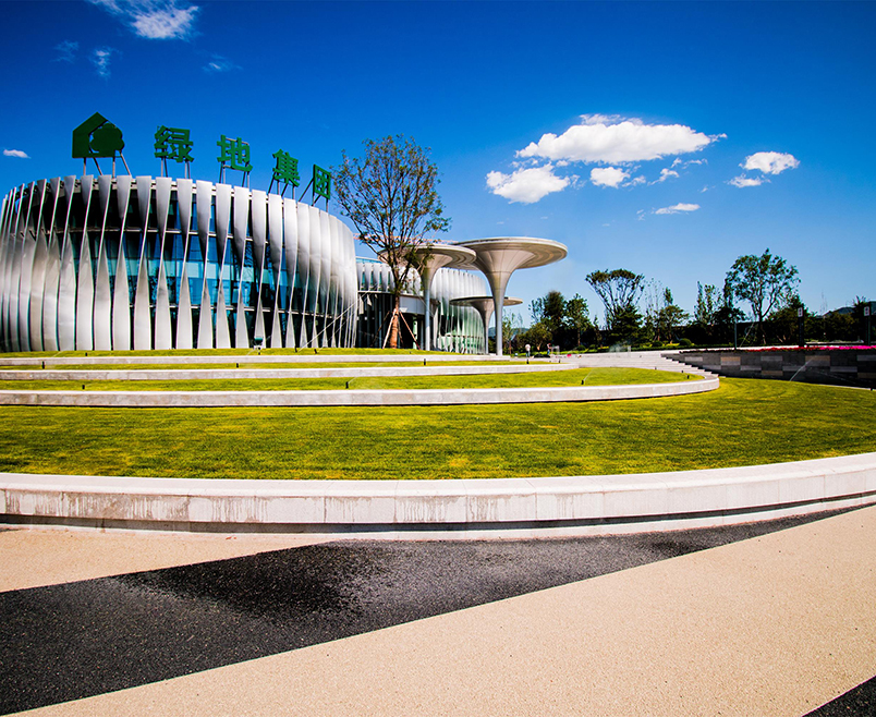 在公共休閑區(qū),設(shè)計(jì)師結(jié)合場(chǎng)地內(nèi)高差采用階梯式臺(tái)地,與建筑形成一種波紋擴(kuò)散的關(guān)系,以堆坡為邊界,并沿邊界設(shè)置樹(shù)陣廣場(chǎng)供客戶活動(dòng)休憩空間。