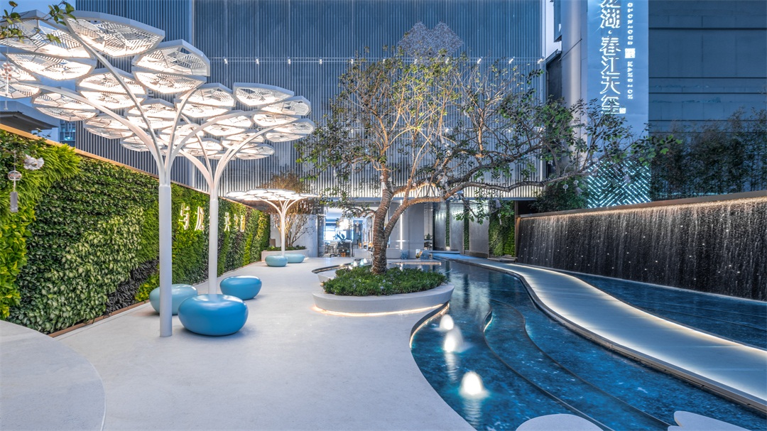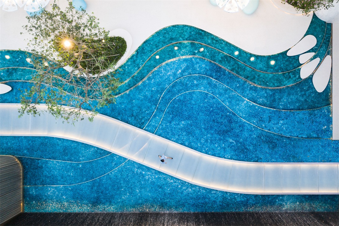 有別于市面上常見(jiàn)的放置兒童活動(dòng)器械而打造的沉浸式體驗(yàn)景觀,我們回歸體驗(yàn)的本質(zhì),分感官層次進(jìn)行場(chǎng)景營(yíng)造。從入口的多層玻璃營(yíng)造出視覺(jué)沉浸式體驗(yàn);入口通道運(yùn)用音樂(lè)盒理念打造視覺(jué)+聽(tīng)覺(jué)沉浸式體驗(yàn),同時(shí)是希望勾起客戶兒時(shí)美好回憶的心理沉浸式體驗(yàn);中庭的沙灘秀場(chǎng)即是多層次的通行體驗(yàn),同時(shí)營(yíng)銷(xiāo)秀的時(shí)候會(huì)變成參與性體驗(yàn);當(dāng)然少不了科技互動(dòng)體驗(yàn)的融入。所有的所有,都是希望客戶來(lái)到后融入到場(chǎng)景里,忘掉工作的煩惱,憧憬未來(lái)生活的美好!