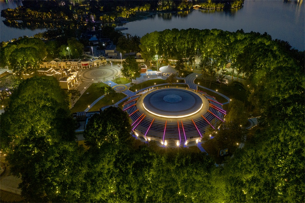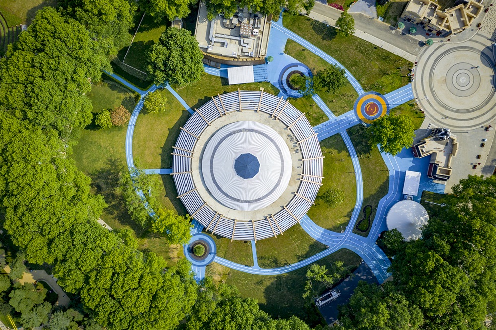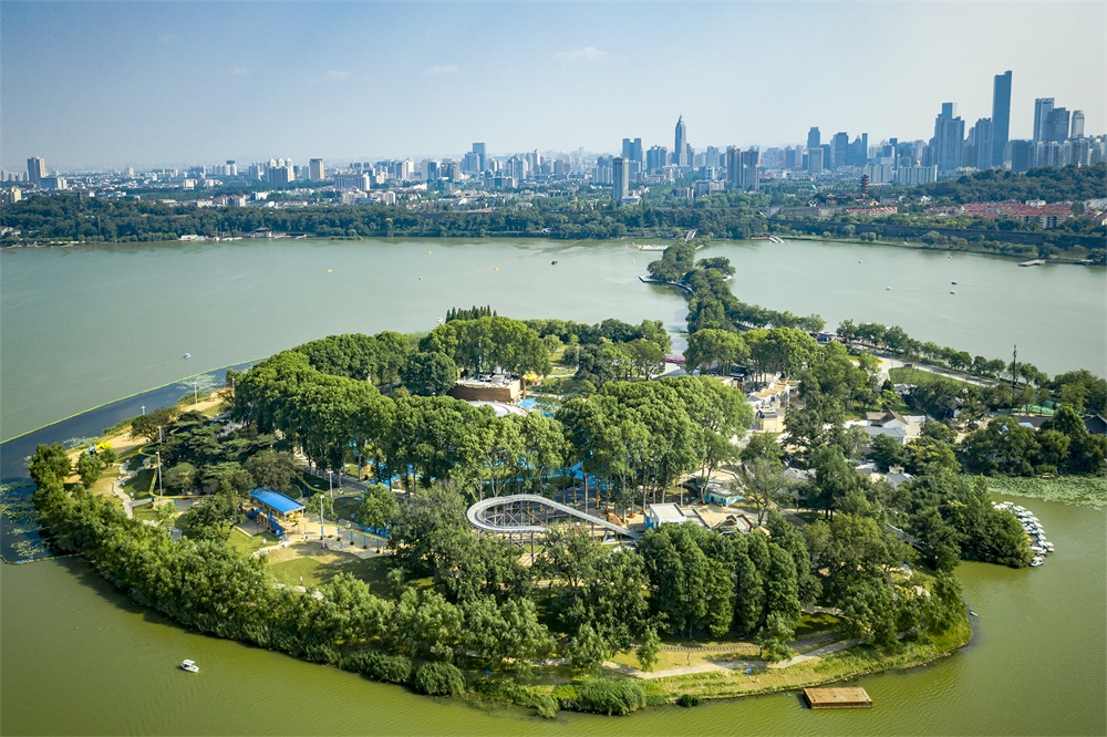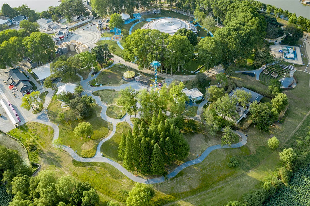 樂園內的游樂空間汲取整個玄武湖自然風光為底蘊,綠蔭環(huán)繞的原生森林與奇妙刺激的游樂設施交織在一起,創(chuàng)造一個富有天真童趣和想象力的環(huán)境,讓游樂設施和場地消隱在森林花語之間也正是我們的設計初衷。