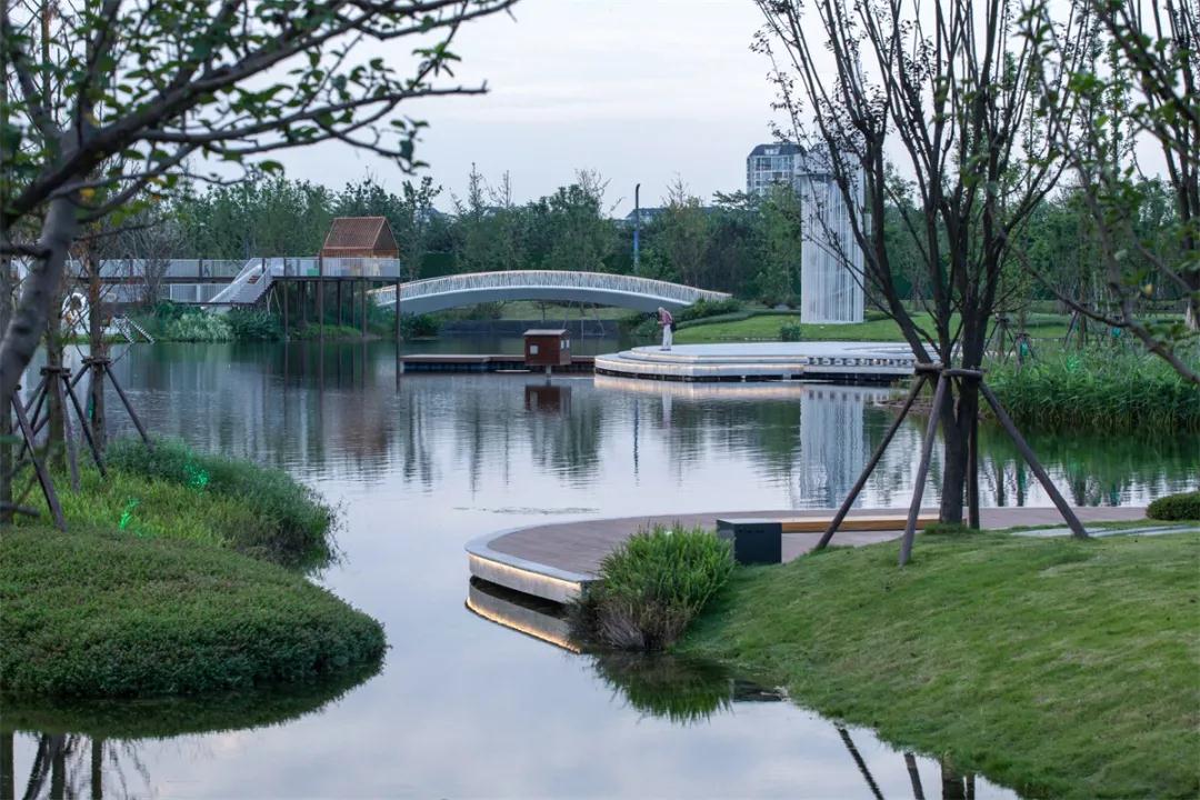 眉州文化村桃園湖基地原有一方魚塘,DDON笛東設(shè)計(jì)團(tuán)隊(duì)整改、梳理了現(xiàn)有水系,依托眉山悠遠(yuǎn)的文化歷史,融入當(dāng)?shù)匚拿}特征,以“樵、耕、讀、漁、賞”作為主題,打造了一個(gè)自然、生態(tài)、人文的城市公園。這個(gè)將自然生態(tài)、人文脈絡(luò)有機(jī)融合的載體未來將連接文化商街、居住社區(qū)、度假酒店等等,不斷延續(xù)區(qū)域的文化氛圍與生活方式,并將千年文明薪火相傳。