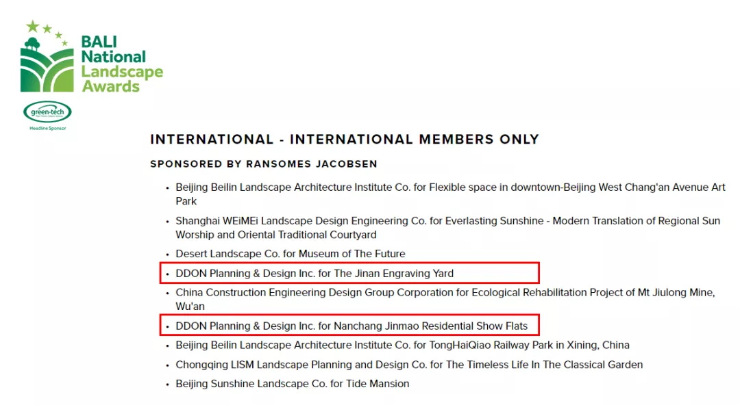 英國BALI國家景觀獎為歐洲頂級景觀類專業(yè)獎項(xiàng)