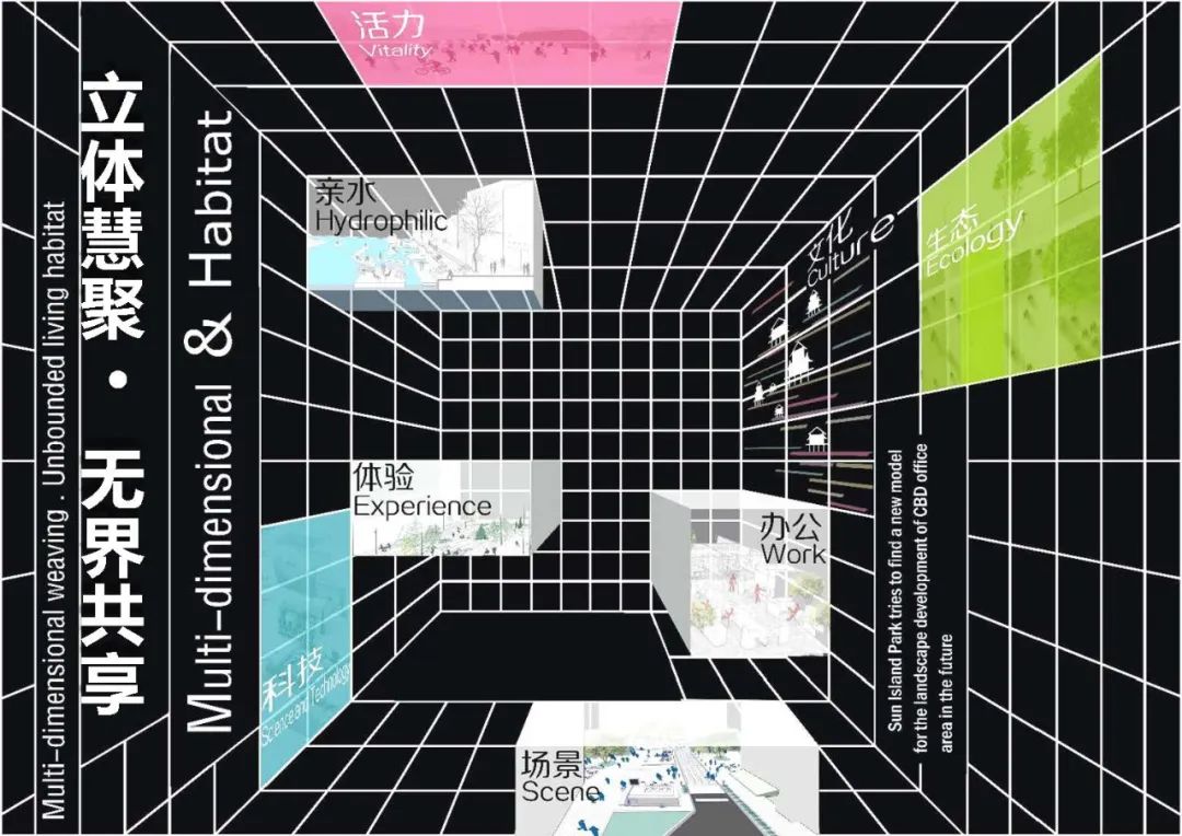 設(shè)計(jì)團(tuán)隊(duì)將貴陽(yáng)大數(shù)據(jù)科創(chuàng)城及項(xiàng)目周邊星月湖公園區(qū)域約1533公頃作為研究范圍,圍繞碳中和、碳達(dá)峰的國(guó)家戰(zhàn)略,堅(jiān)持生態(tài)優(yōu)先等根本原則,結(jié)合大數(shù)據(jù)科創(chuàng)城整體定位,以「立體慧聚,無界共享」為設(shè)計(jì)主題,采用建立自然生境、提效交通體系、營(yíng)造多元場(chǎng)景、植入智慧科技等多重策略。通過鏈接城市商業(yè)、商務(wù)、居住、生產(chǎn)等功能,構(gòu)建出有特色、有活力、有創(chuàng)意的復(fù)合型空間,在突出公園自身特色的同時(shí),為將環(huán)太陽(yáng)島以及周邊指狀綠帶打造成為新區(qū)生態(tài)文明展示的窗口、市民活動(dòng)的公共客廳、數(shù)字場(chǎng)景的體驗(yàn)區(qū)賦予無限可能。