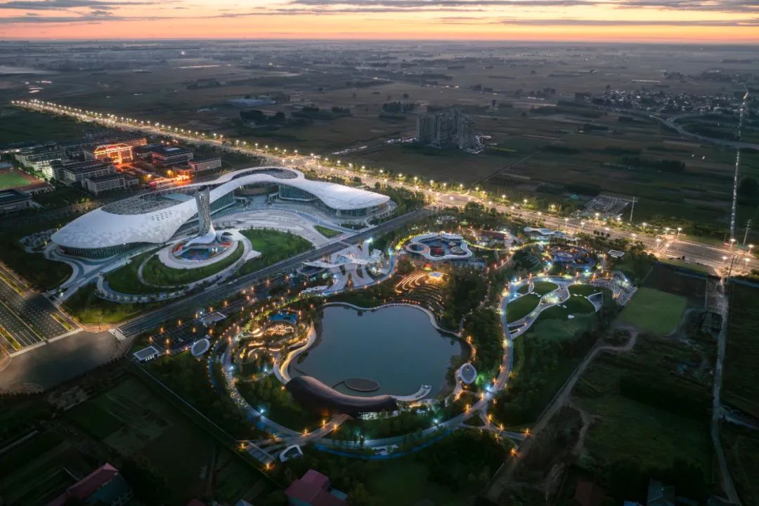 笛東作為總體規(guī)劃設計牽頭單位,積極組織協(xié)調規(guī)劃、建筑、景觀、運營及施工建設等專業(yè)團隊,歷時三年,成功實現(xiàn)園博會項目高標準高質量建設。規(guī)劃設計突破常規(guī)選址,創(chuàng)新性地采取“一園三區(qū)”建設模式,由主展館、定州展園、地市展園三部分組成。規(guī)劃充分發(fā)揮各大園區(qū)分散布局的重要優(yōu)勢,讓展園在城市功能區(qū)塊之間有效滲透。設計踐行公園城市發(fā)展理念,實現(xiàn)“以園帶城,以城促園”的美好愿景,讓園博會辦時精彩、辦后更精彩,真正成為永不落幕的園博盛會。